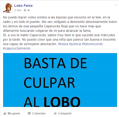 El lobo hace su descargo en Facebook